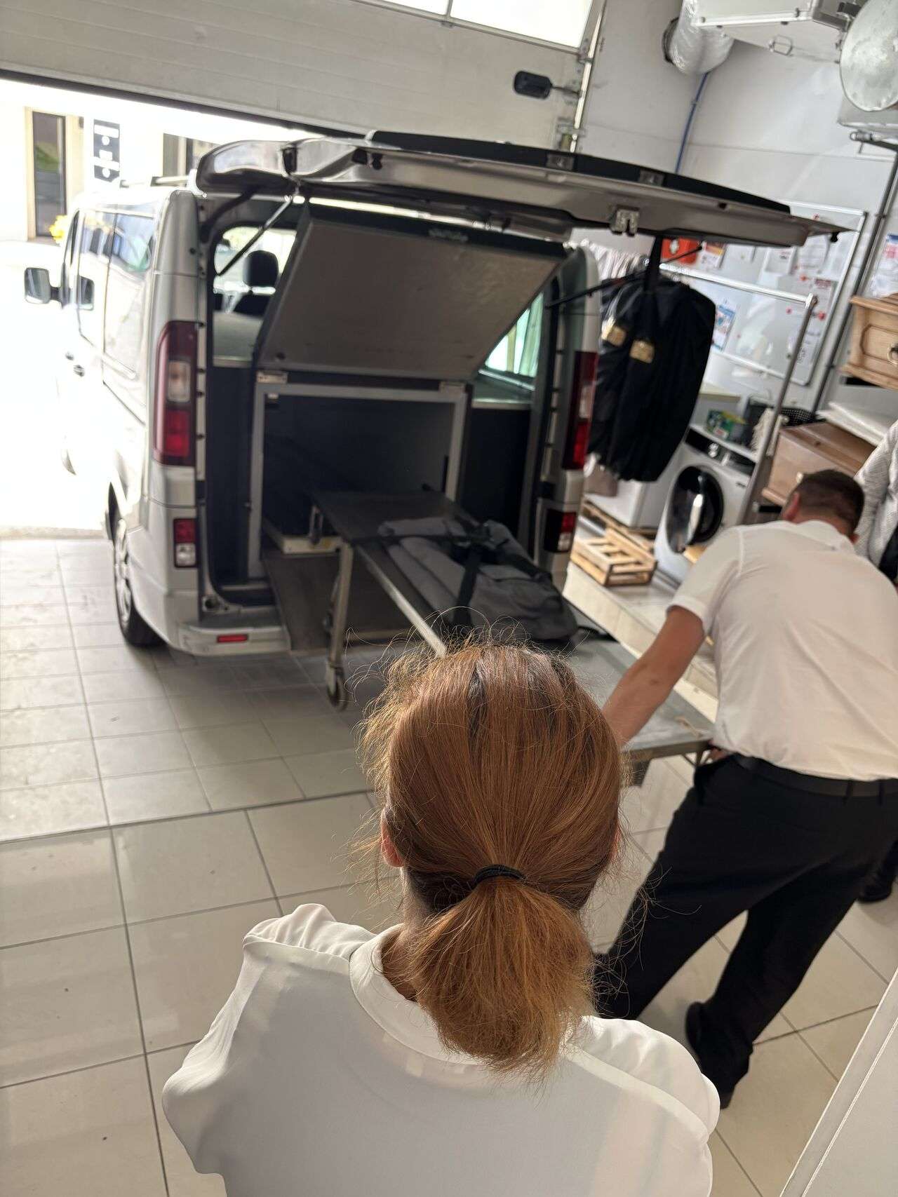• Manipulation de la civière, sécurisation du chargement en corbillard et application de l’hygiène sécurité,